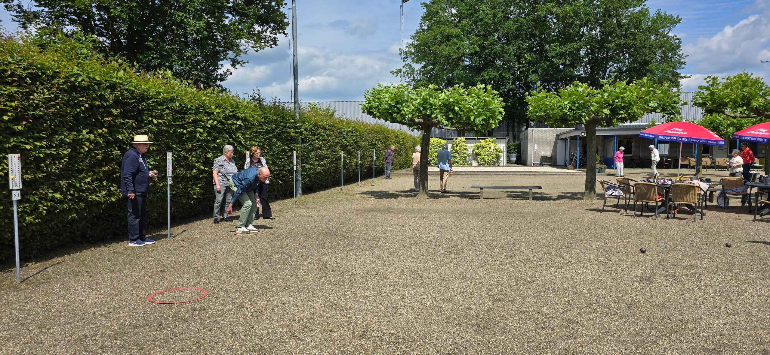 Frans en Hennie (vrouw van), Kees en Trude (vrouw van) werden door het bestuur uitgenodigd om samen jeu de boules te gaan spelen. Na een dankwoord door Jan Ackermans en een lekker kopje koffie kon de strijd beginnen. We hebben ontzettend veel plezier gehad en de zon scheen ook volop, wat momenteel niet altijd het geval is.